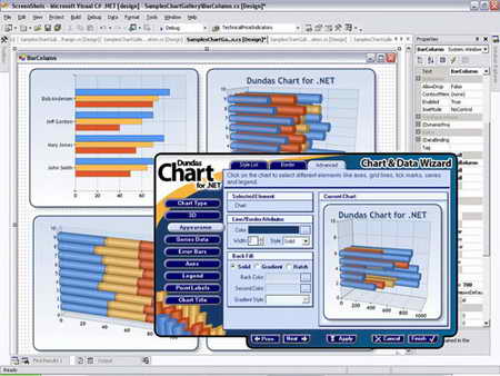 Dundas圖表和資料嚮導 - 利用高級的圖表和資料嚮導,快速的製作出你感觀適合的圖表並綁定到