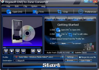 Bigasoft DVD to Zune Converter是一個易於使用的DVD轉換工具。它轉換DVD到
