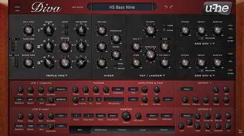 Urs Heckman(U-He)宣佈新的合成器 Diva。Diva 的振盪器、濾波器以及包絡精確的